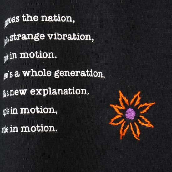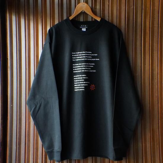 If You Going to San Francisco ~ 髪飾りに花を忘れないように、とあり、花の手刺繍を施してあります。メッセージプリント&ワンポイントの手刺繍が良いバランスでおすすめの一枚です。