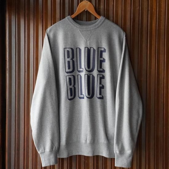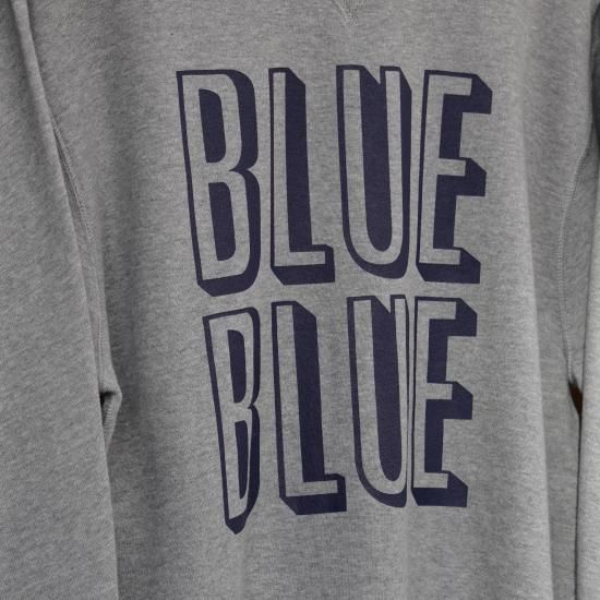 ヨーロッパのサインペインティングのフォントをイメージした存在感のあるプリントのスウェットです。1970年代初頭の現存数が少ない希少なアズマ編機を使用した裏毛のスウェット生地。現代の編み機に比べゆっくりと時間をかけて編みこんだ生地は特有のふくらみと柔らかさがあります。デイリーに着るスウェットにぴったりの心地の良い素材です。1960年代のヨーロッパのサインペインティングのフォントをモチーフに「BLUE BLUE」のロゴをデザイン。