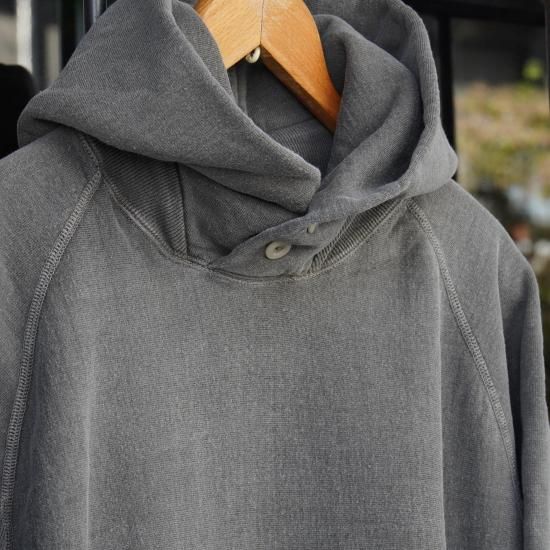 定番のスタンディングパーカーをサイズリニューアルし、フライス(袖口リブ・裾リブ)はやや長めで全体的に少しゆったりしたシルエットにしました。