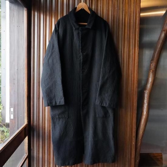 シンプルでありながら、ノマド的な雰囲気も漂うロングコートです。