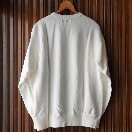 2025年秋冬からリニューアルしたスウェットベース。従来のモデルよりも身幅にゆとりを持たせ、着心地を改良しました。袖付けはセットインスリーブに変更し、少し肩の落ちる雰囲気にしています。プリント後に洗いを施し、前面のプリントを割れさせ背面の色が少し覗くよう仕上げることで、着古したような奥行きのある一着となっています。