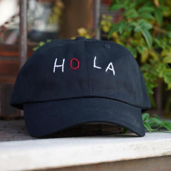 シンプルにHOLA (スペイン語で、やあ、こんにちは) のみを、手刺繍で施しました。